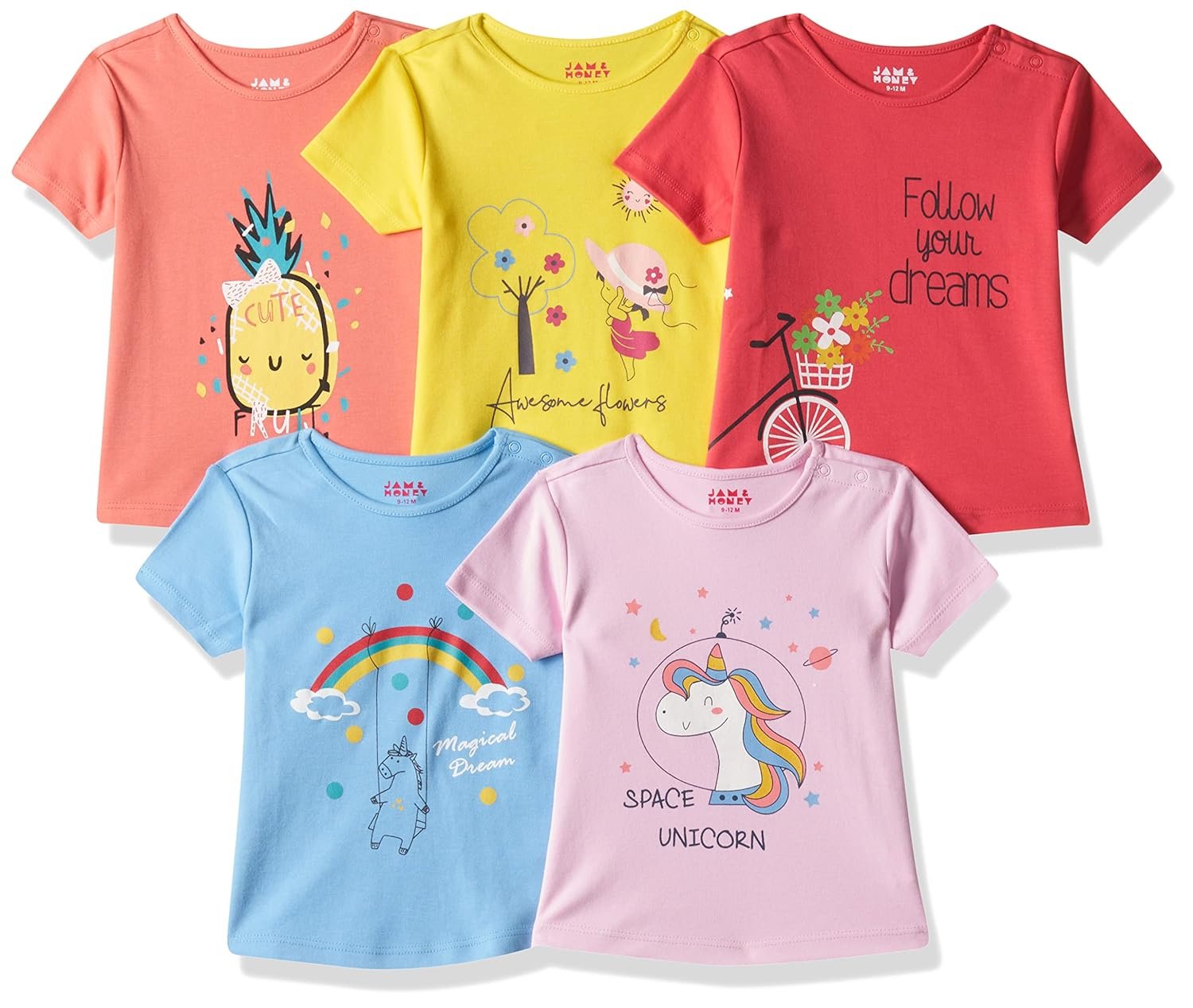 Be the first to review “Amazon Brand – Jam & Honey Girl’s Baby- 100% Soft & Pure Cotton Short Sleeve Stylish Comfy Printed Regular Fit T-Shirts (Pack of 5)”