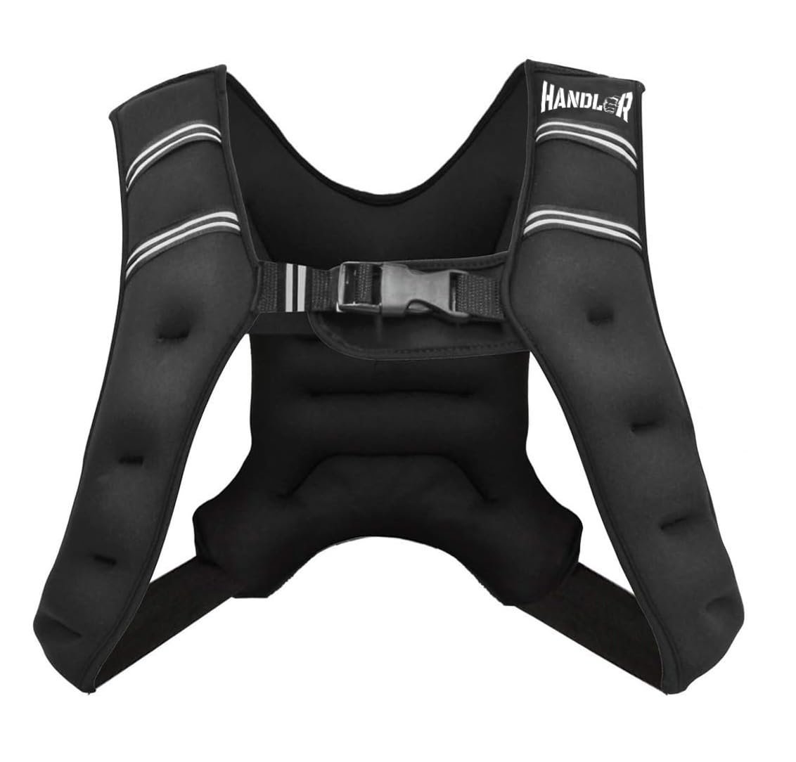 Handler Durable Body Weighted Vest for Men & Women 10 Kg Weight Vest with Reflective Stripe for Workout | Gym Equipment | Fitness jacket| Workout Equipment, Muscle Building | Military Equipment | Weight Loss, Weightlifting, Adjustable Vest Belt (Black, 10 Kg)