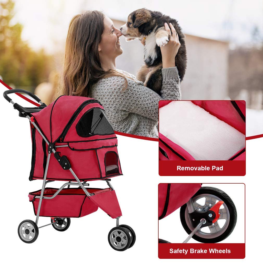 🐩🐩【GREAT FOR TRAVEL】No tools required the pet stroller quickly collapses for convenient storage anywhere whether at home or on vacation. Means it is easy to take from the car to the home to your favorite vacation spot. our dog stroller collapsible design makes it ideal for travel and camping. Pet stroller cat stroller dog stroller
