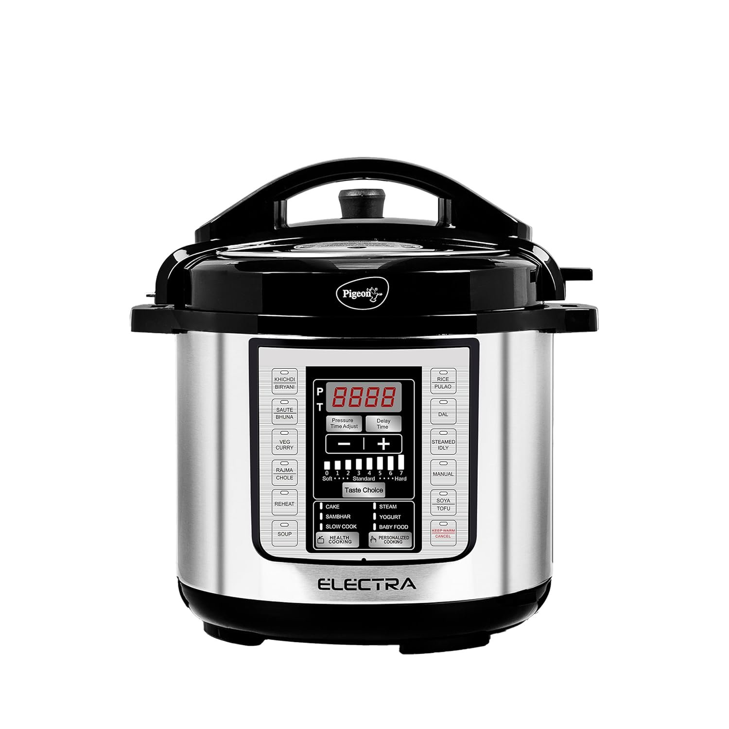 Pigeon By Stovekraft Electra Smart 6 Litre Electric Pressure Cooker with Digital Display | 18 Indian Preset Menu | Automatic Rice Cooker | Delay Timer & More (Stainless Steel)