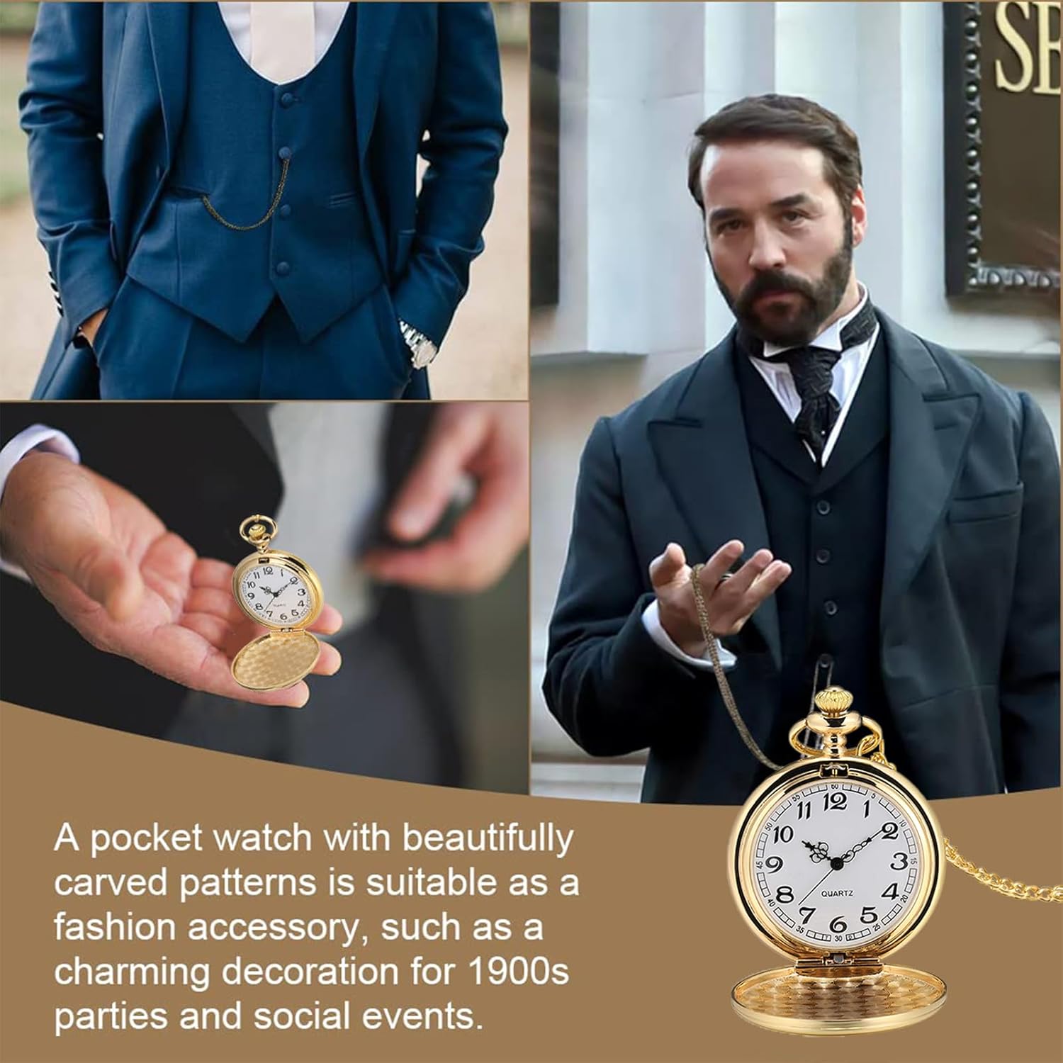 Quartz Movement: Easy time setting and release button. Good touch feeling,hands of hour, minute and seconds match with Roman numerals offer clear and easy read time display. Elegant case,add undeniable style for any business occasion or gathering. The pocket watch will be an “Eye-catcher” at the suit, vest, pants or dress for gentlemen or ladies!