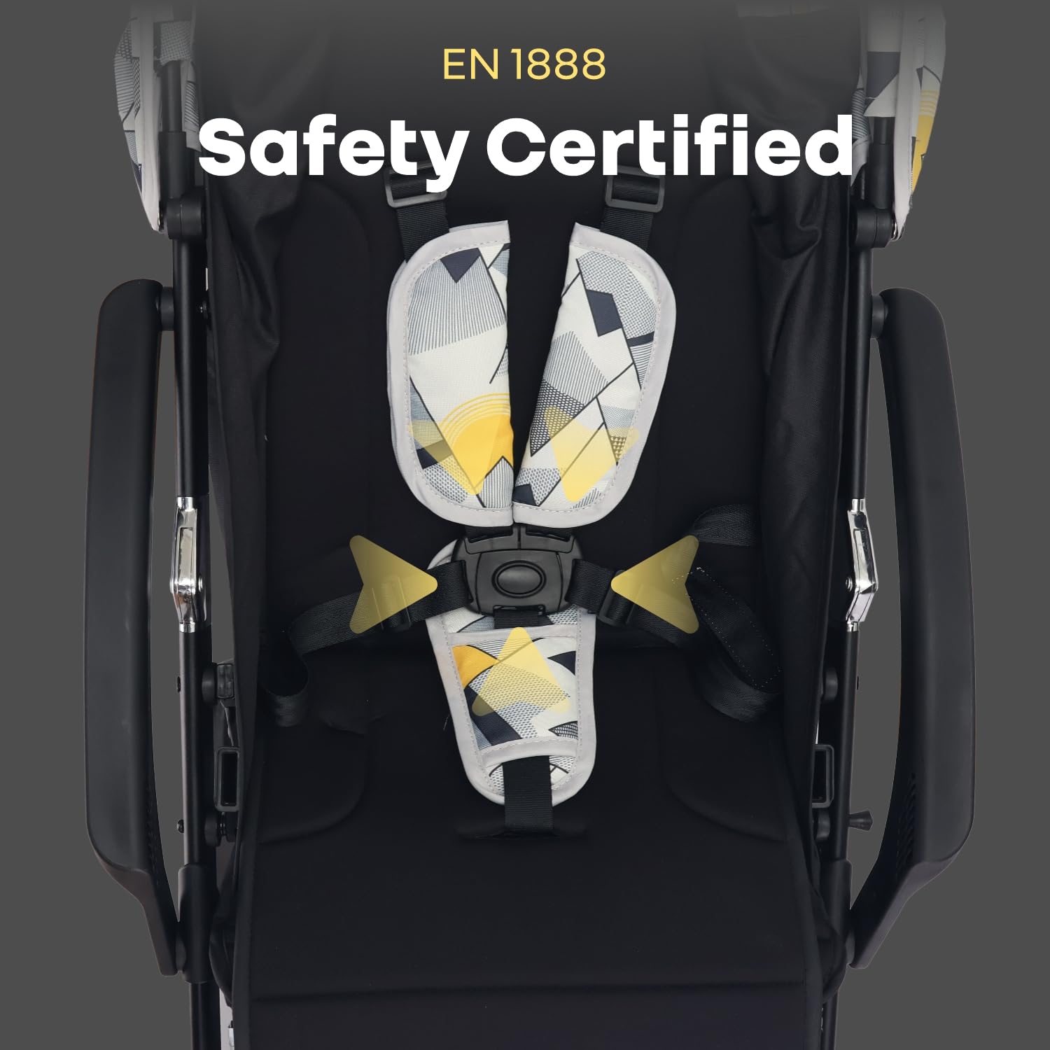 Safety First: The Street Smart Aero Stroller by R for Rabbit places safety first with its EN 1888 Certification, guaranteeing your child’s outdoor adventures are safe and sound. Furthermore, it includes a safety harness to provide added assurance.