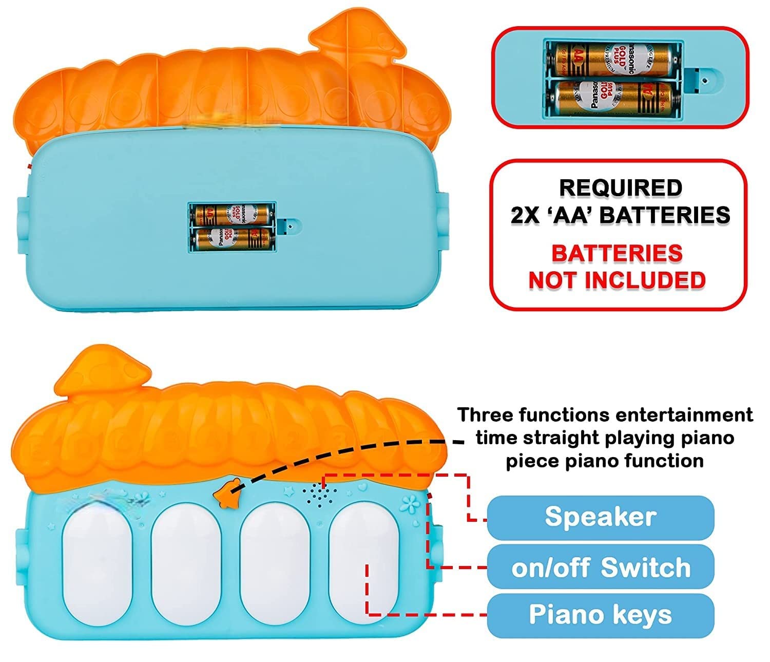 Five busy activity toys with a large mirror & 4 Animal Toys hangings included.This gym helps in stimulating baby’s sensory touches like sight , tough and hearing.Short or long-play music, In our endeavor to provide the quality products to people, we periodically make product modifications, therefore actual product may vary a little than shown in the images.